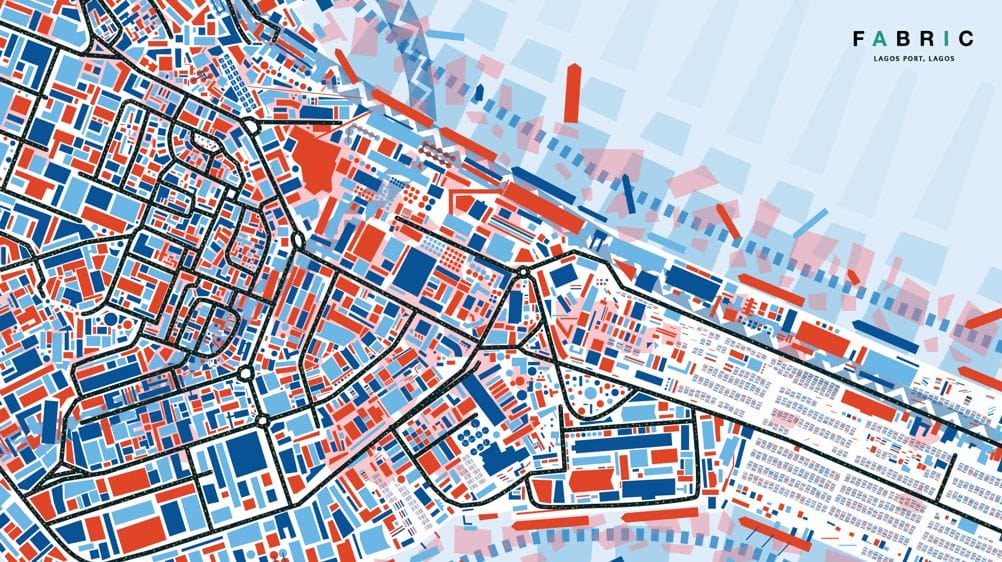 Fabric representing the digitalization of Ilupeju, which lies 10km north of Lagos central and is a high-density, low cost housing residential suburb that satisfies the labour requirements of the port and the city of Lagos.