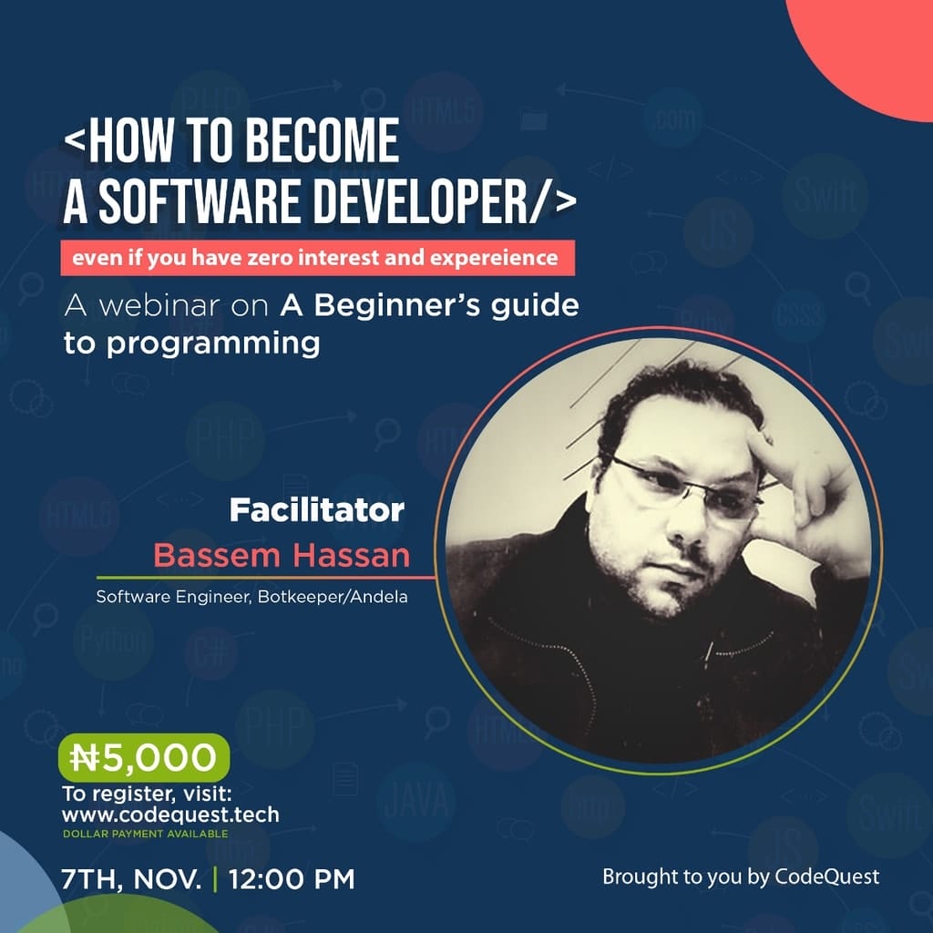 On the 7th of November, 2020, this received renewed attention with CodeQuest’s online Programming Webinar for all beginners who desired to become successful in building a Software career and pursuing it at any cost. The webinar provided participants with an adventurous experience that would help them scale through their careers as software engineers.
