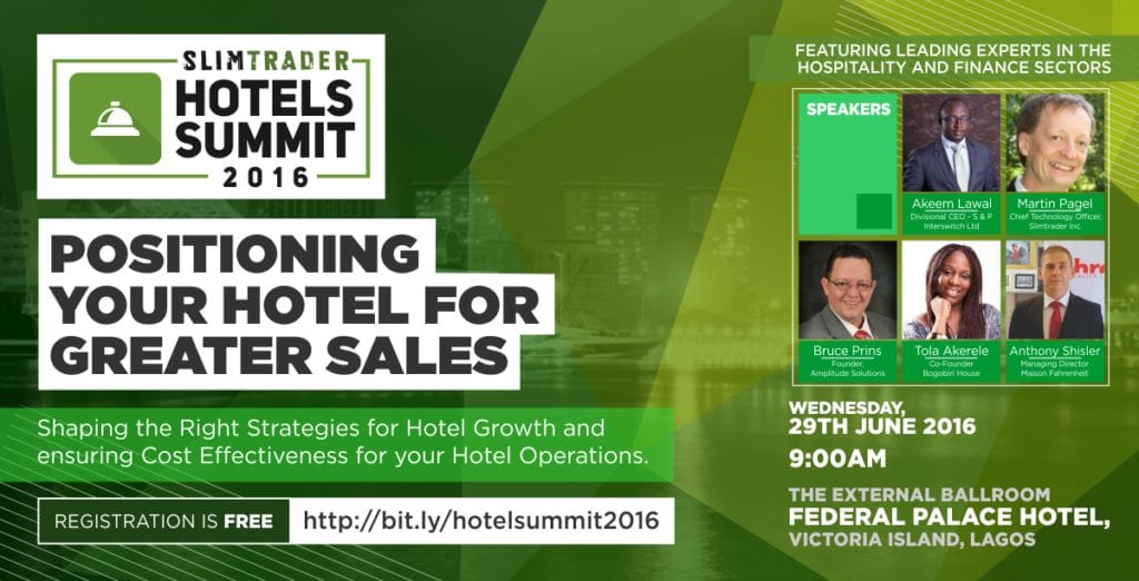 Nigeria’s leading turn-key e-commerce solution provider for businesses, SlimTrader, is set to host its inaugural empowerment forum for owners and managers of hotels and hospitality businesses in Nigeria on June 29, 2016 at the Federal Palace Hotel, Ahmadu Bello Way, Victoria Island, Lagos.