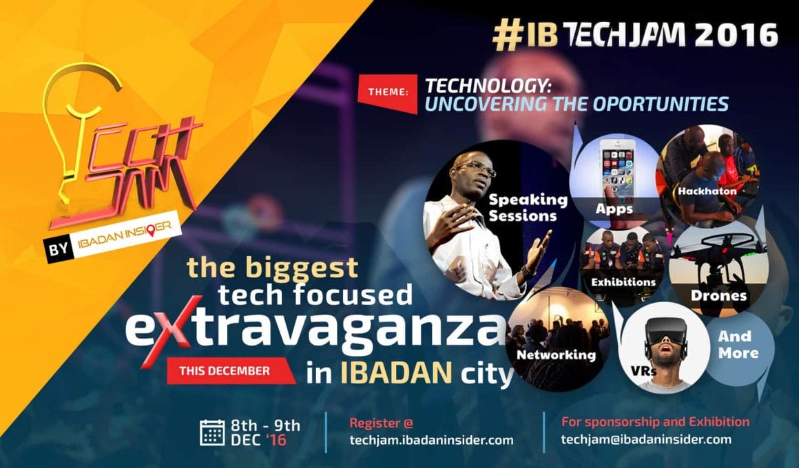 The theme of Techjam 2016 is Technology: Uncovering the Opportunities. The event  will take place on the 8th and 9th of December 2016, at the Nustreams Culture and Conference Centre Km 110 Alalubosa GRA Extension, Iyaganku Ibadan.