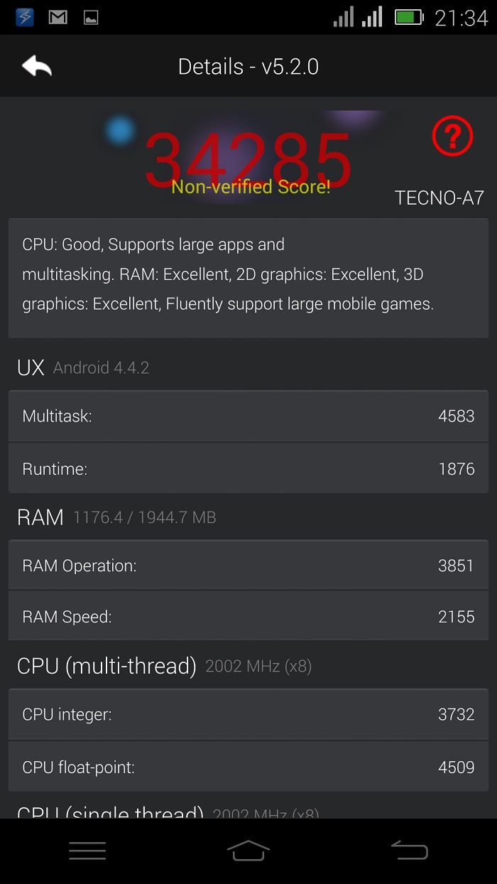 For the tech endowed, below are the screenshots of the Antutu Benchmark test for the device
