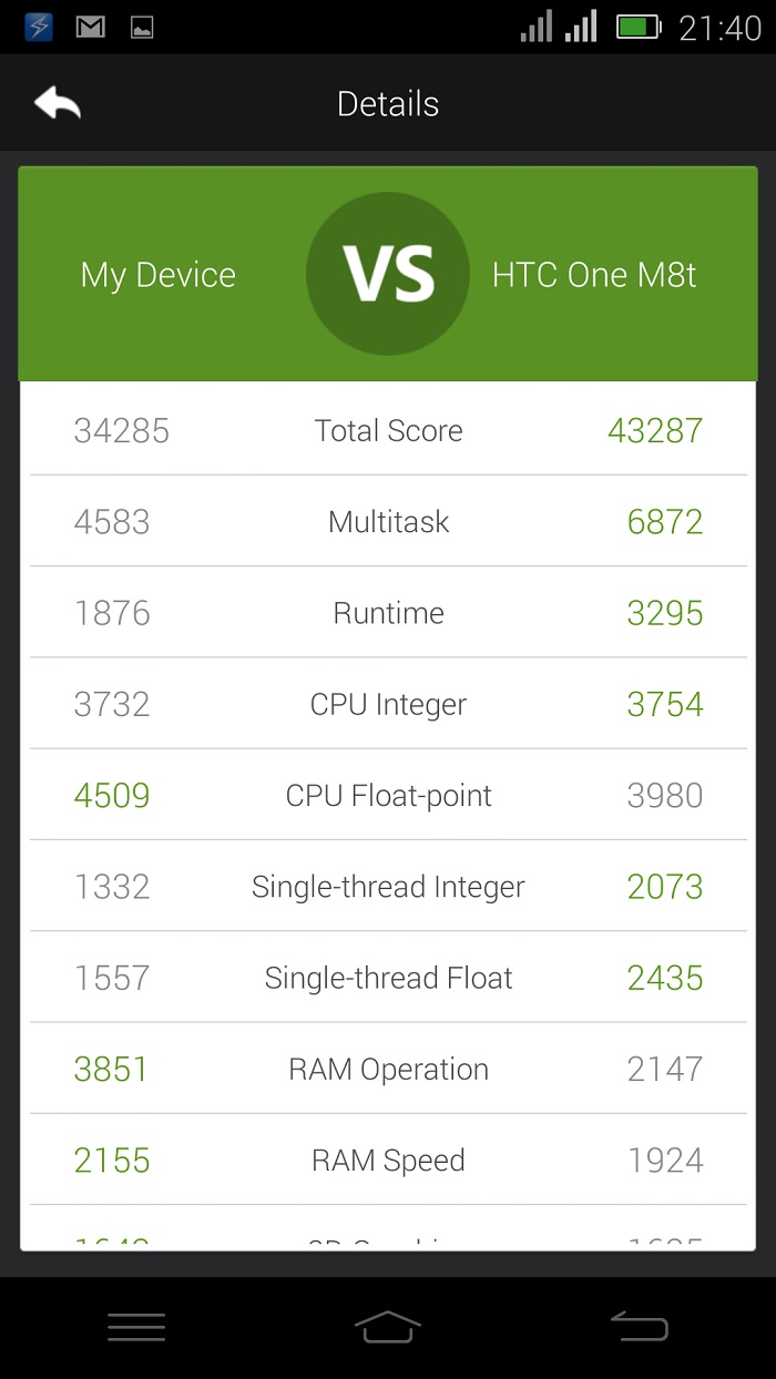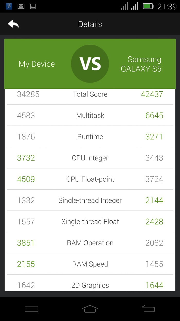 …and these are the comparison of the its result with the Galaxy S5 and the HTC One M8