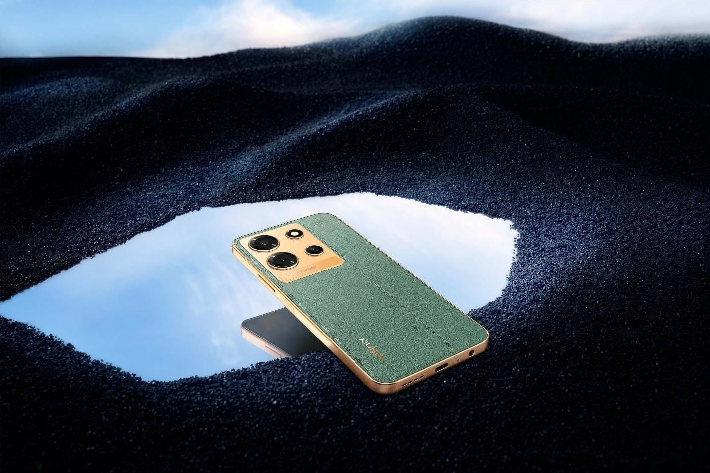 The Infinix NOTE 30 smartphone is a mobile phone designed to run on cellular networks. The shape of the whole phone is flat and simple and it has a battery cover design of two different materials, glass and plain leather.