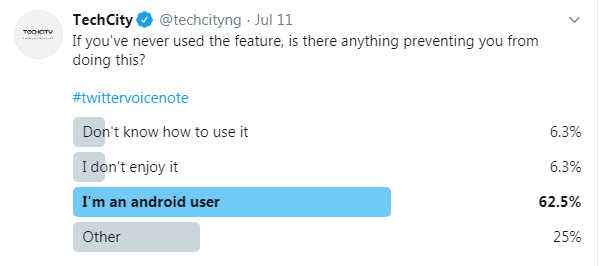 It is important to note that the voice note feature was quickly panned by civil rights advocates and people with disabilities for not including any accessibility features such as closed captions. In addressing the issues relating to lack of accessibility and inclusiveness in the voice note, Twitter’s Head of Design and Research promised to work on all feedback provided to include an accompanying transcript.
